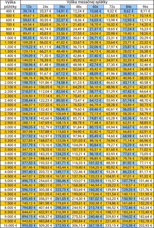 * Výška splátky / ročnej úrokovej sadzby je fixná počas celej doby platnosti